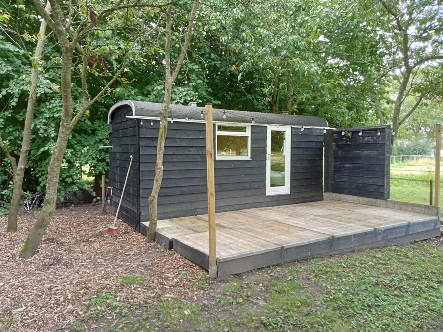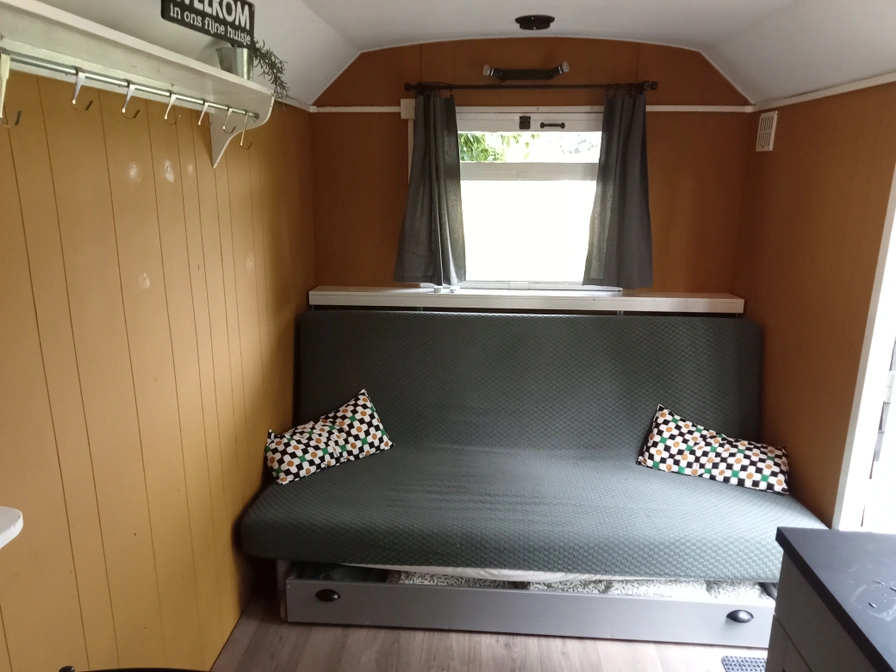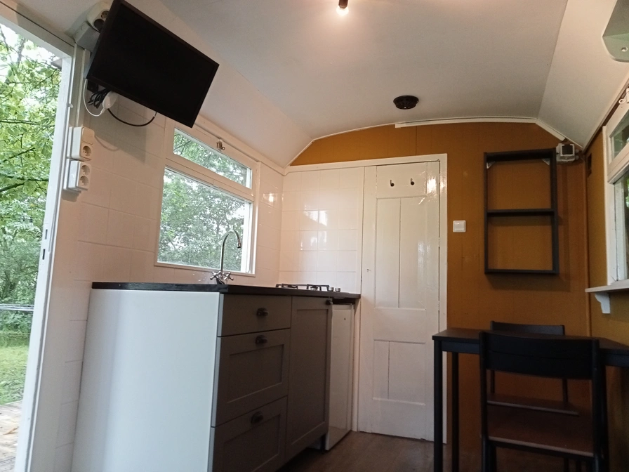 Het verblijf Trijntje, klein maar fijn is hier wel van toepassing. In ons verblijf Trijntje zijn alle benodigde voorzieningen aanwezig. Douche en toilet, keuken, slaapbank en natuurlijk een heerlijk terras tussen de fruitbomen met uitzicht op de paardenwei. Het chalet is voor max. 2 personen. Keukenlinnen en beddengoed zijn inclusief. Verder is een waterkoker met koffiezetapparaat, inclusief koffie en thee aanwezig. In de keuken vindt u een een koelkast met vriesvakje samen met een 2 pits gasstel. Het chalet is voorzien van een ruim terras met zithoek en een groenstrook met picknicktafel. Slapen doet u op een slaapbank.