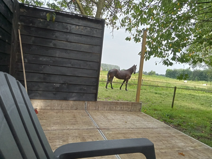 Het chalet op ons erf staat midden in het groen. Het ligt op het zuiden met veel zonuren met uitzicht op de paardenwei. Konijnen, hazen, ganzen en fazanten en het gekwaak van kikkers vergezellen u tijdens een bakje koffie op het terras. De naam Het Zwarte Paard is afgeleid van de liefde voor het Friesche paard. Het Zwarte Paard is zeer geschikt voor toeristen die met de fiets de Bommelerwaard willen verkennen. Wat dacht u van slingerende dijken met de aanwezige scheepvaart op de Waal dat altijd voor vermaak zorgt. Een tussenstop bij een restaurant voor een lunch of een bakje koffie, wie wil dit nu niet? Met een Volkswagen beetle Cabrio de Bommelerwaard verkennen. Ook dat is mogelijk bij het Zwarte Paard. In de buurt zijn diverse uitstapjes mogelijk, het altijd gezellige Zaltbommel ligt om de hoek. Hier vindt u diverse horeca gelegenheden, het Stadskasteel, stadswandelingen en gezellige winkelstraatjes. Ook vestigingsstadjes als Heusden en Woudrichem zijn dichtbij. Slot Loevestein vindt u in Poederoijen allemaal op fietsafstand van Het Zwarte Paard. Een dagje Den Bosch, met zijn gezellige winkelstraatjes, horeca, stadswandelingen musea en rondvaart op de Binnendieze is een aanrader voor een dagje uit. Zoekt u meer rust dichter in de buurt van Het Zwarte Paard, de wandelroute het Klompenpad is te bewandelen vanaf Het Zwarte Paard. U kunt starten vanaf uw chalet. Liever Reeën spotten in de schemer, dan biedt een wandeling in de Lieskampen mooie kansen om dit te zien. Kortom, er is genoeg te zien en te ontdekken in dit prachtige stukje van de Bommelerwaard.